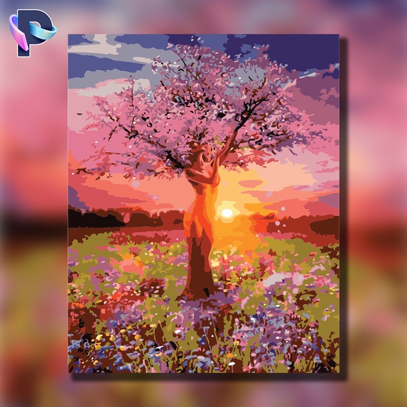 Sunset Beauty Tree Unframed Diy Paint By Numbers No 7459 Shopee Philippines
